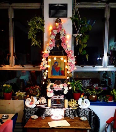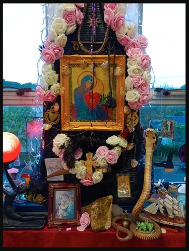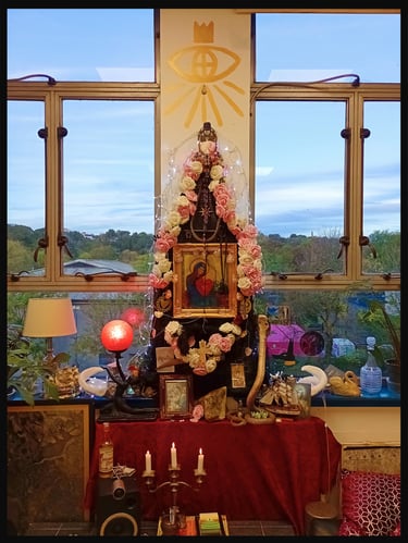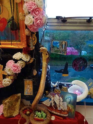 The present day Shrine of St Anne in The Wood, is a syncretic shrine - created by Artist, Delyth Roberts, in Brislington, Bristol.